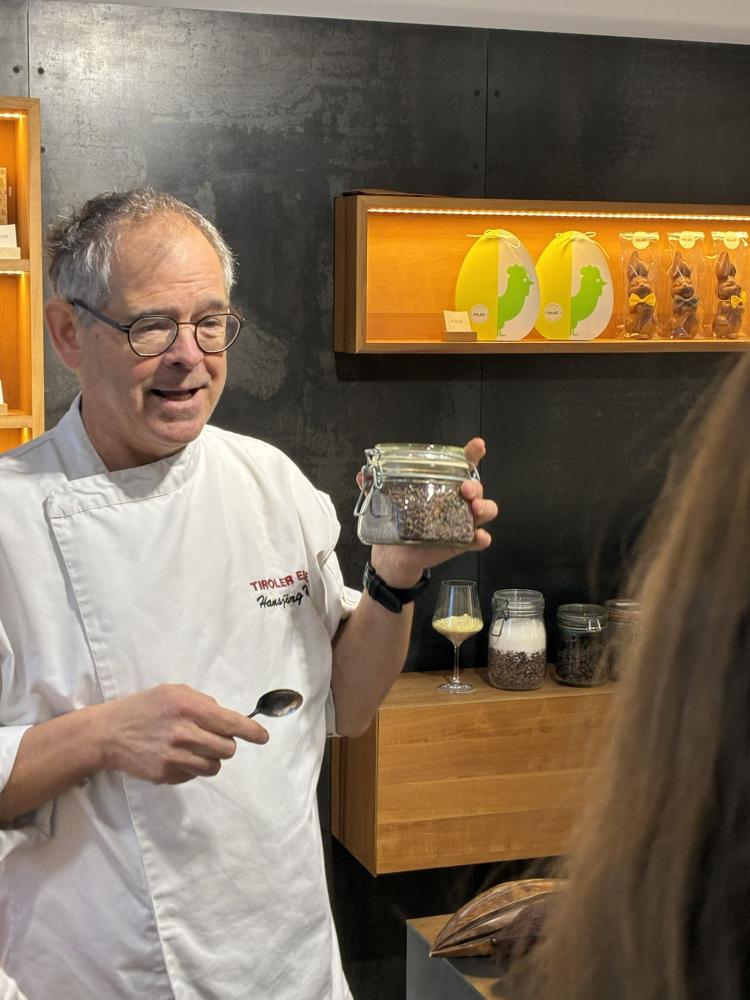 Am dritten Tag unternahm ebenfalls der 2. Jahrgang eine spannende Exkursion zur Schokoladenmanufaktur „Tiroler Edle“ in Haag. Ein großes Dankeschön an Hansjörg für die interessanten Einblicke, die informativen Erklärungen und die köstliche Verkostung. Danach führte die Reise mit Zug und Bus weiter nach Seefeld, wo ein gemeinsames Mittagessen im Nanni’s sowie ein erlebnisreicher Besuch im Olympiabad Seefeld auf dem Programm standen.